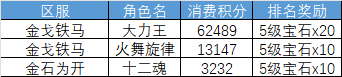 1. 消费排名第一的玩家额外获得 5级宝石x5。